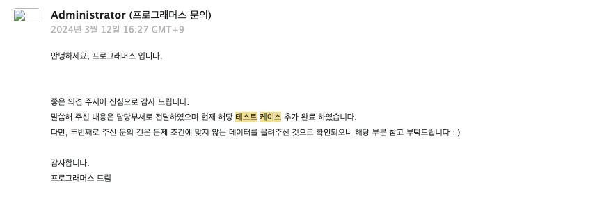 테스트케이스 추가 확인 메일